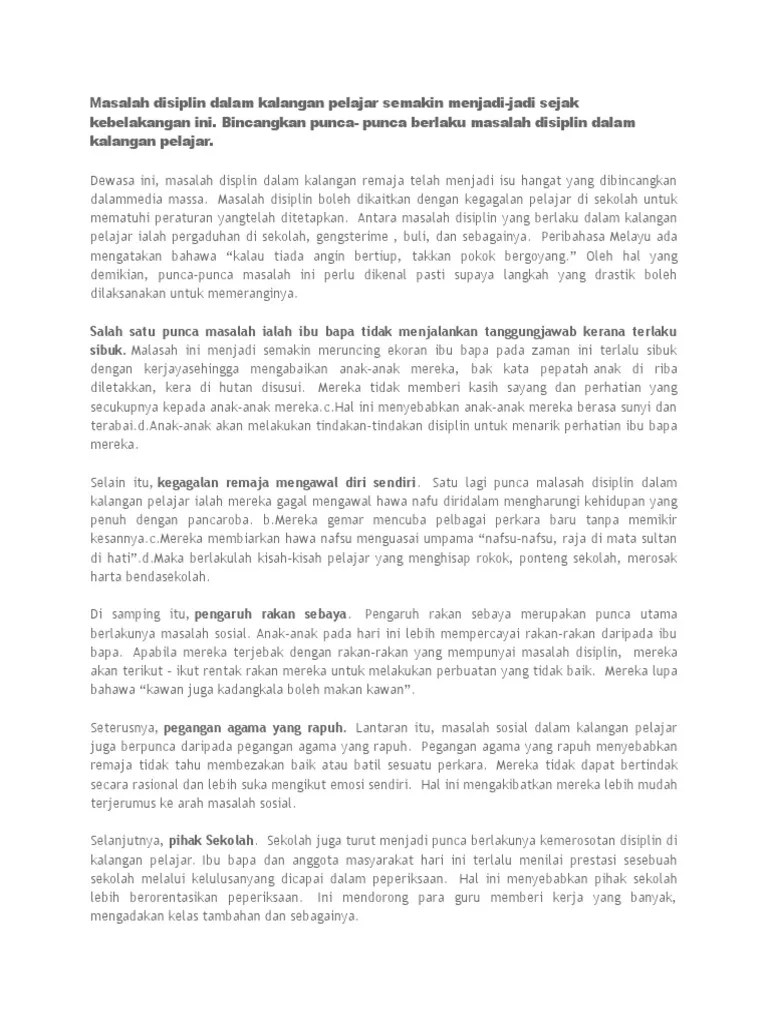 Contoh Masalah Disiplin Pelajar - Karangan Masalah Disiplin Pelajar Englshploic